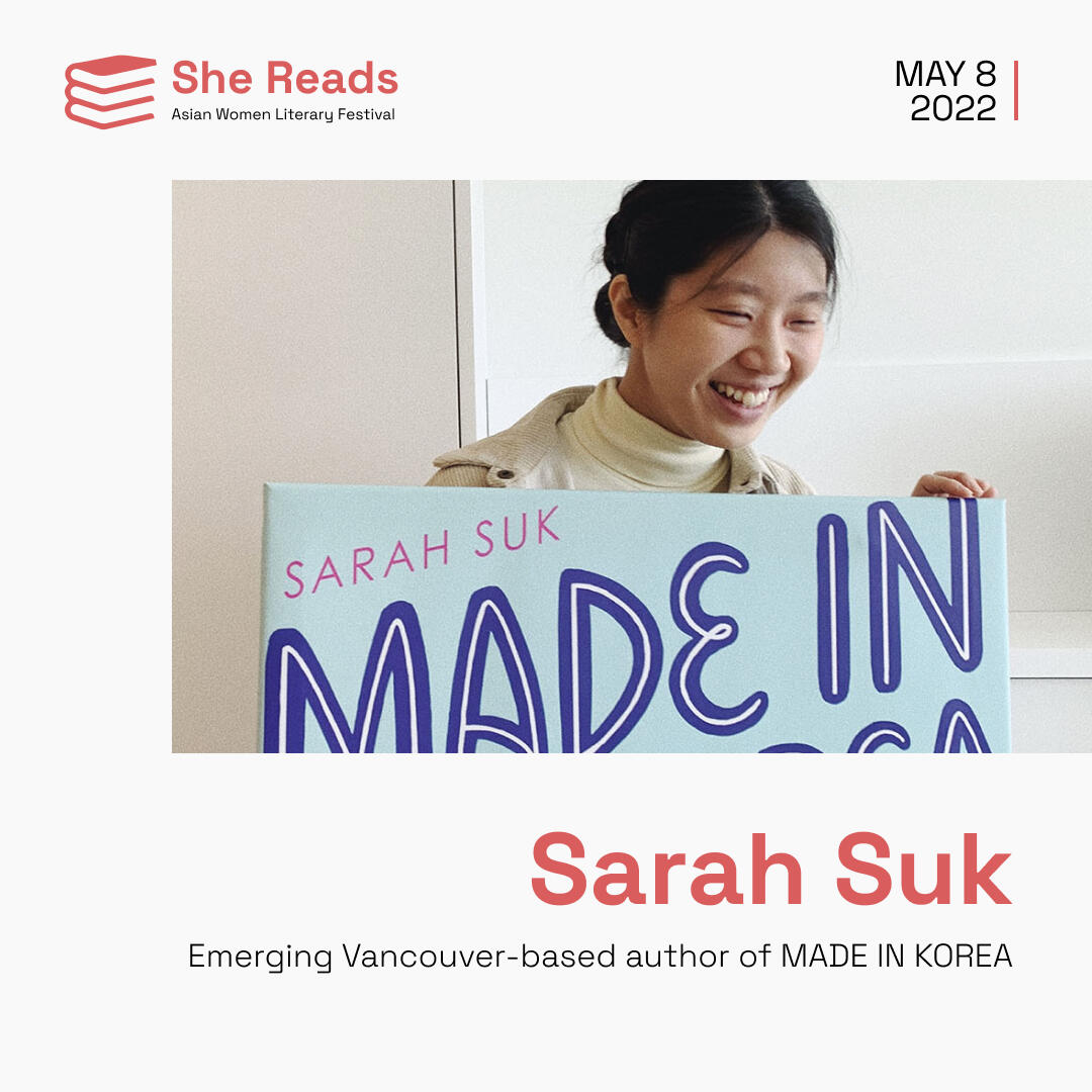 SARAH SUK is an emerging author who will be reading her book Made In Korea published in May 2021, adding a great piece to the Vancouver literary scene. She is a Vancouver local and recent UBC graduate with a major in English Literature and a minor in Creative Writing. At She Reads: Asian Women Literary Festival, Sarah will be reading an excerpt of her novel, Made In Korea and co-facilitating a panel discussion with Vivek Shraya, Mercedes Eng, and Eden Robinson.